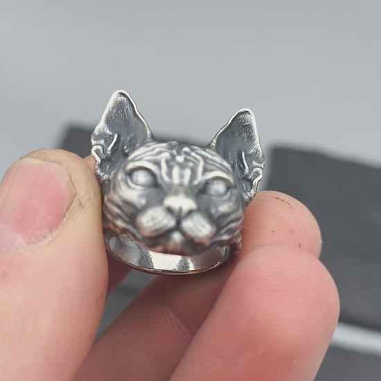 Sterling Silver Sphynx Cat Ring – Unique Handmade Jewelry for Cat Lovers